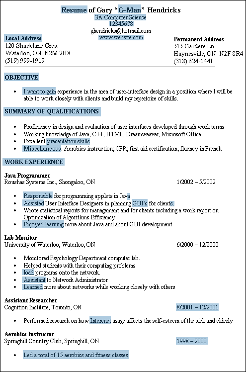 This is an unnecessary statement. Start each entry with an action verb and resist the temptation to "sum up" the job by describing what you learned or enjoyed. Instead, list only the job responsibilities and save the discussion of what you learned and/or enjoyed about previous jobs for your cover letter. One exception: if you learned something on the job (e.g., new piece of software) but did not get a chance to use it on the job, you could include it as a "learned" statement. |